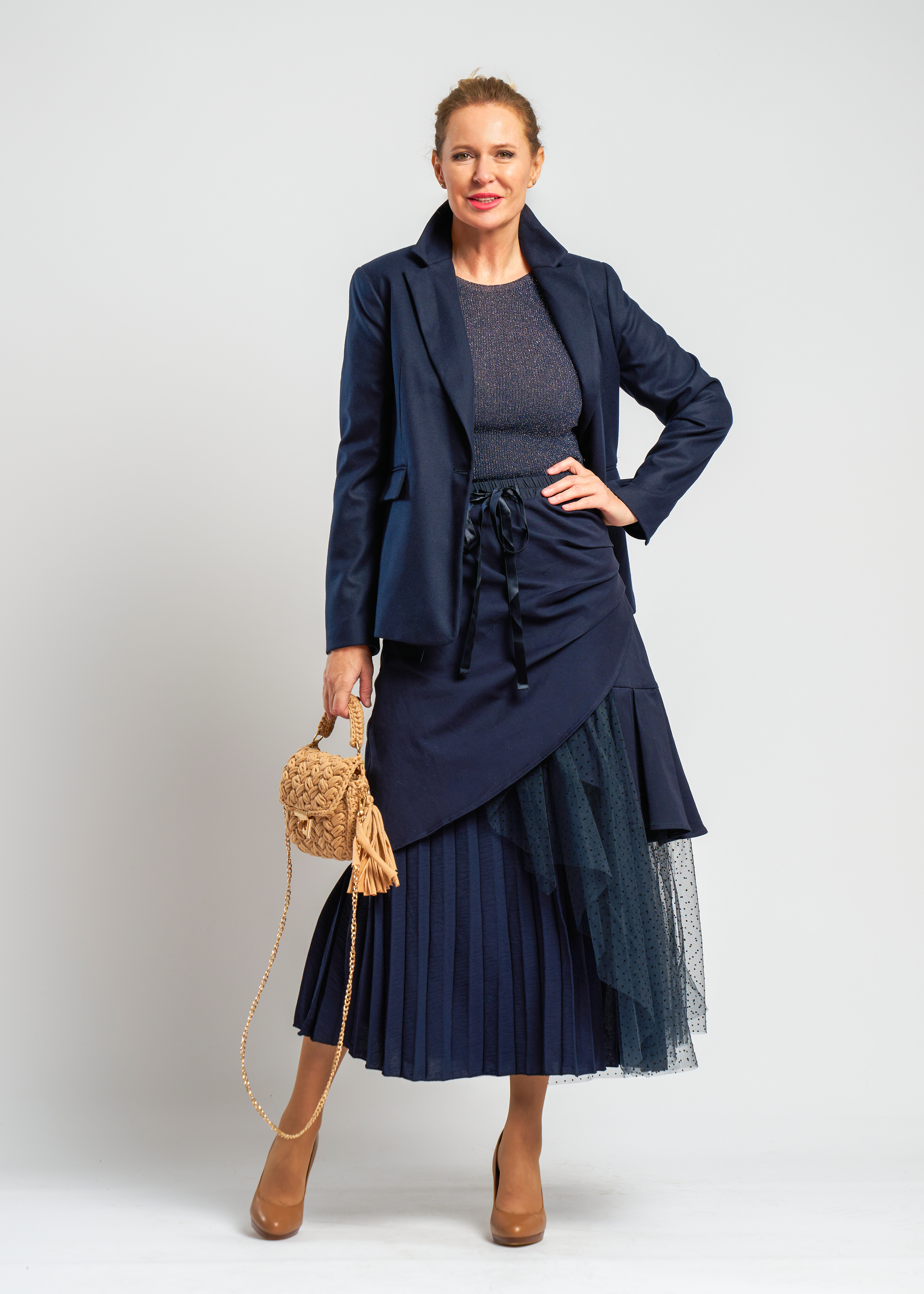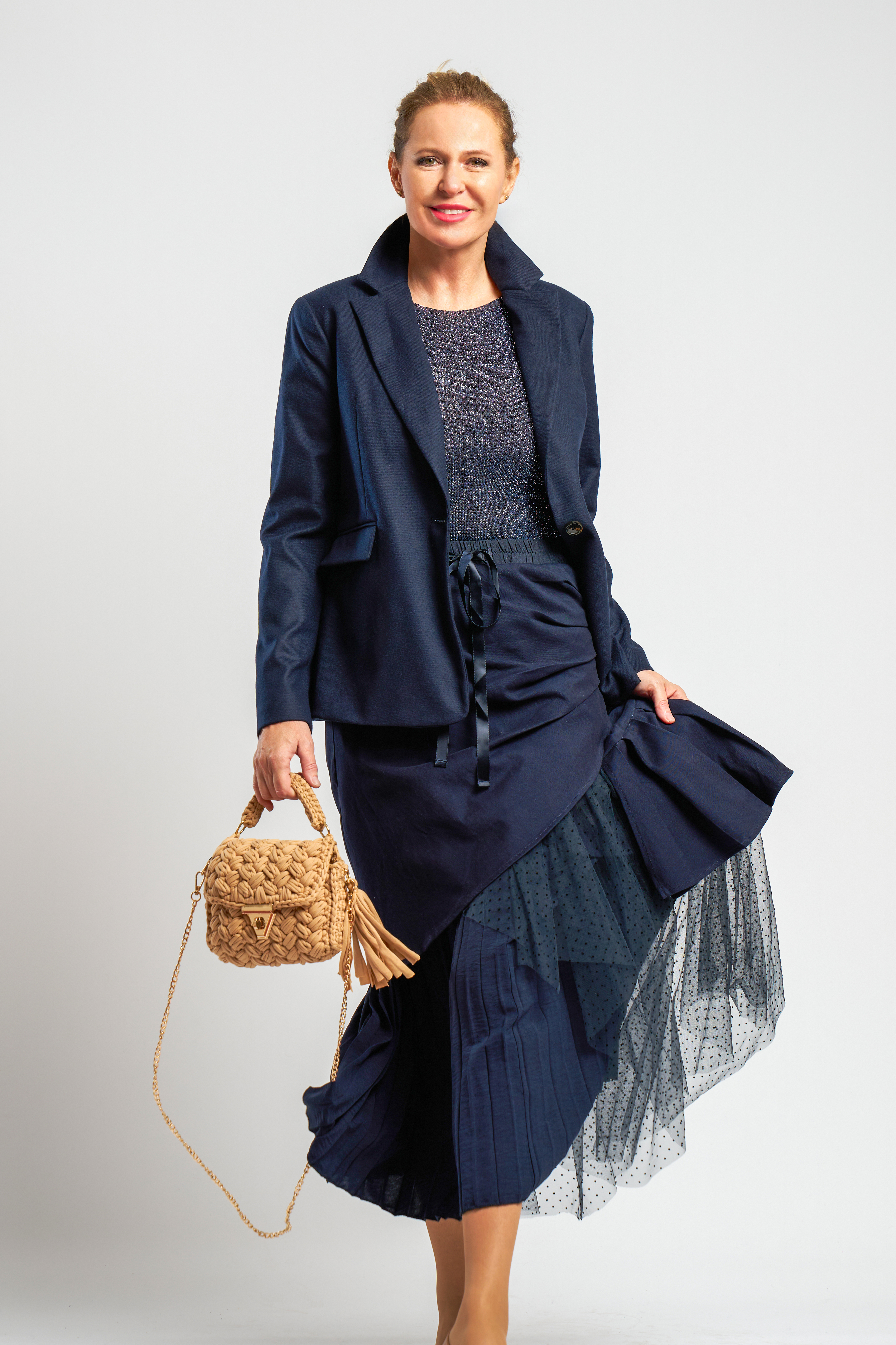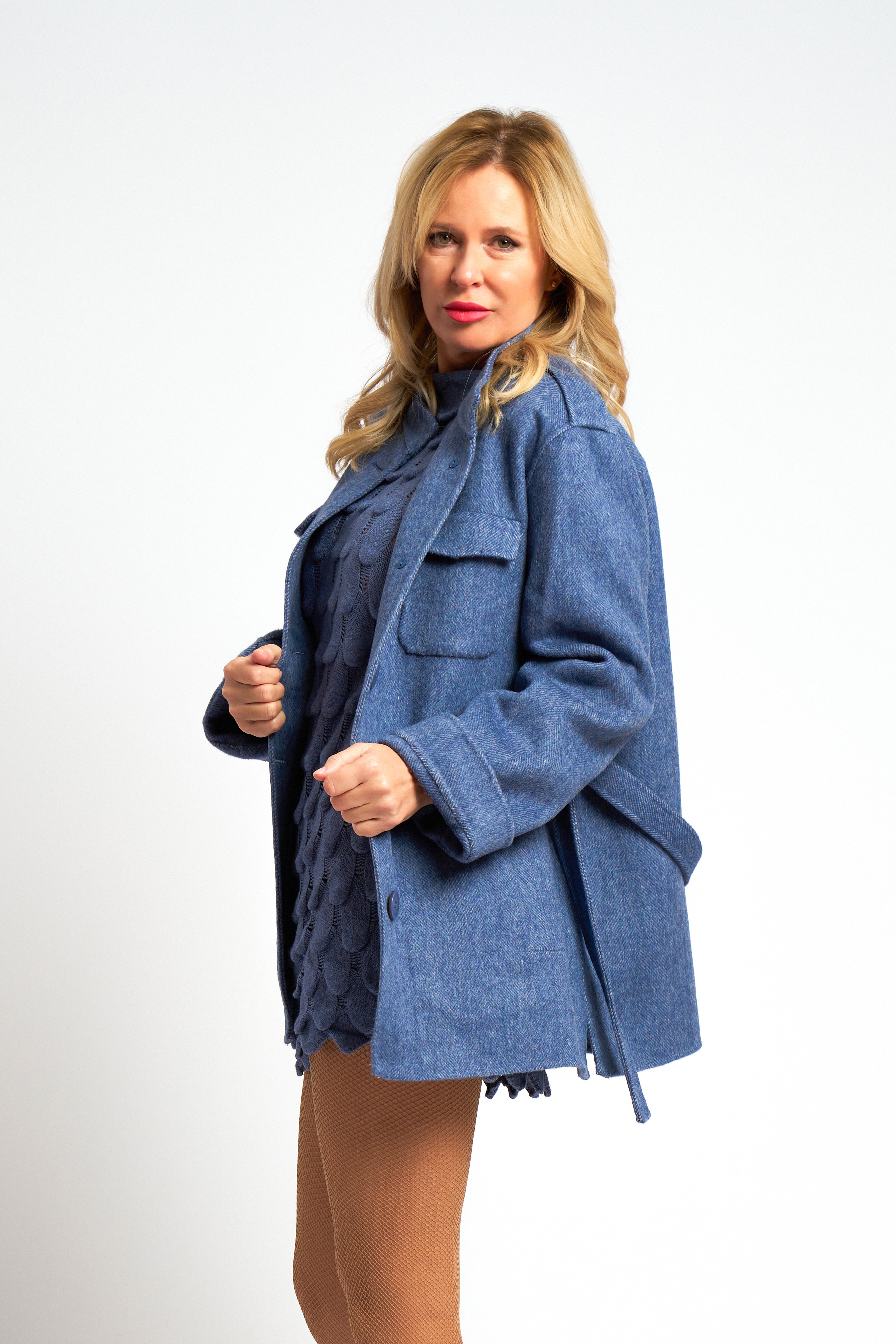 Bő fazonú galléros ruha osztott varrással, puffos ujjakkal