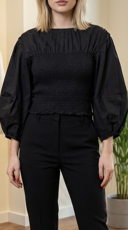 Modell magassága 173 cm, mellbősége 90 cm, derékbősége 74 cm