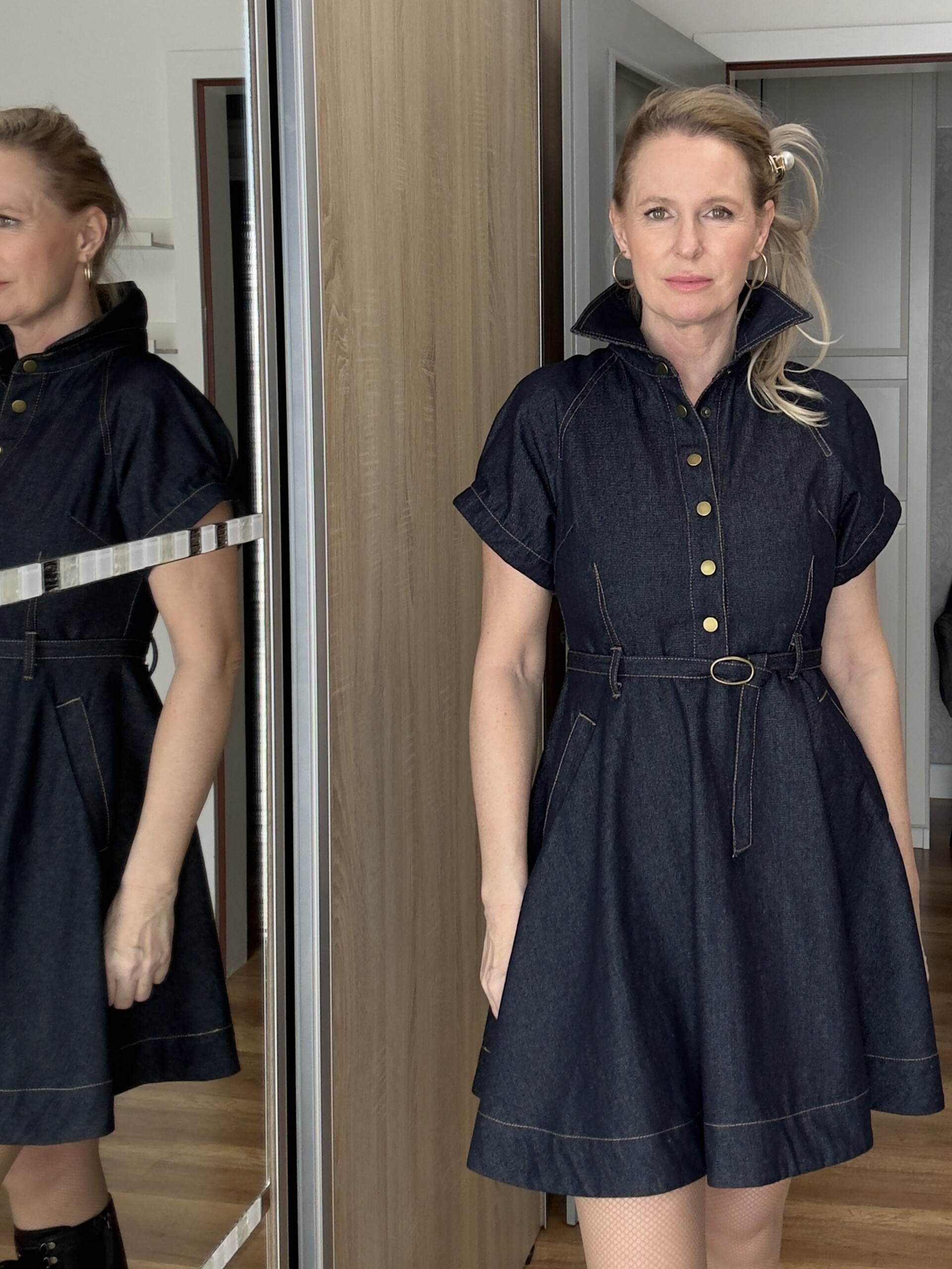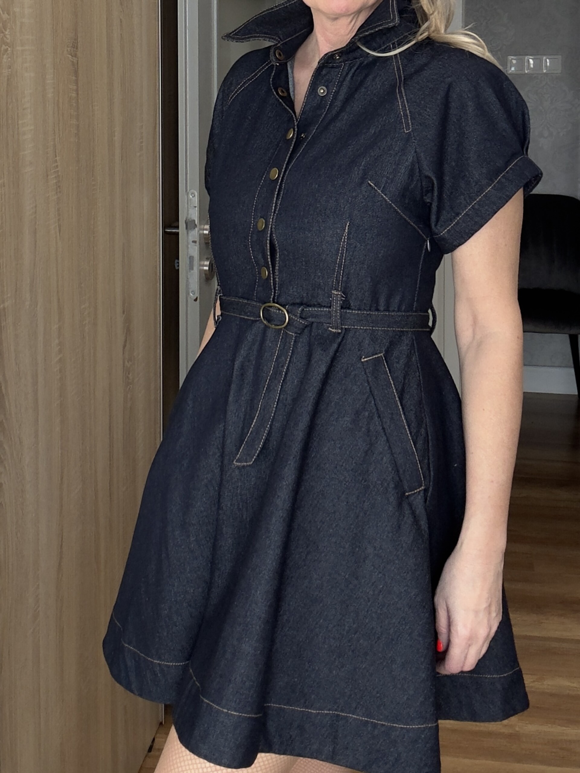 Rövidujjú patentos farmer Mini ruha