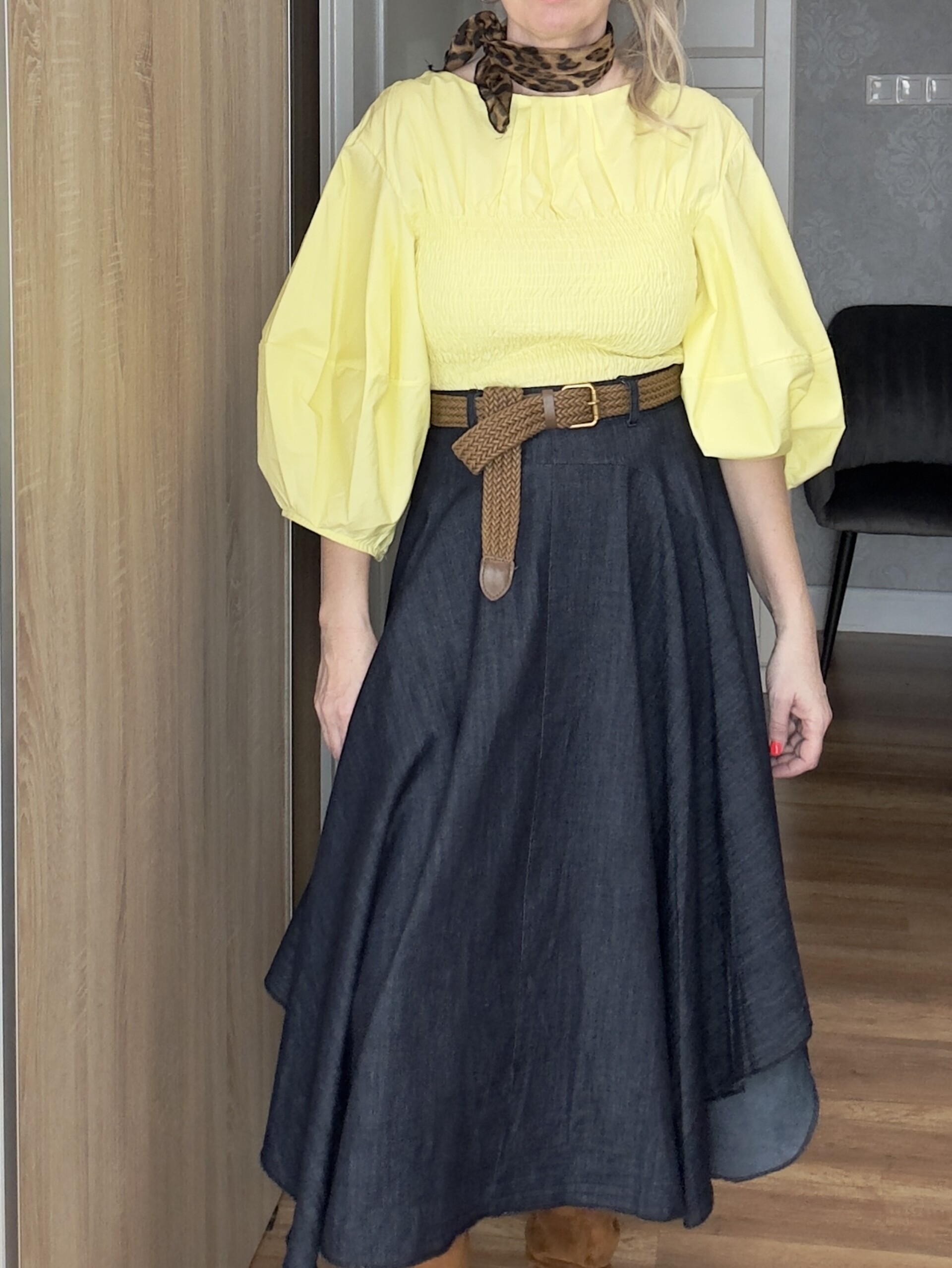 Modell magassága 173 cm, mellbősége 90 cm, derékbősége 74 cm