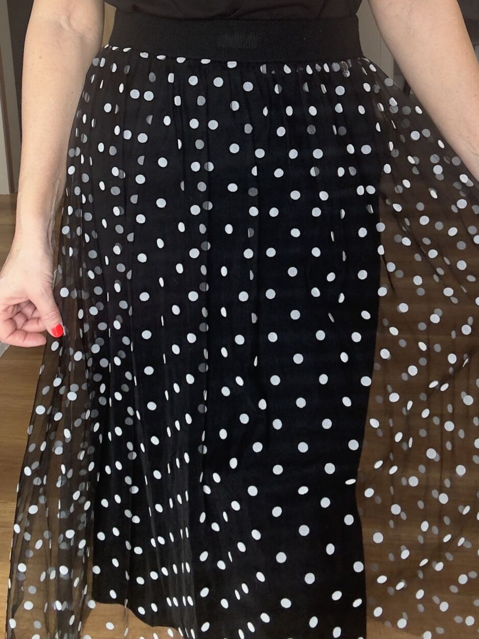 Kötött szoknya, pöttyös tüllel