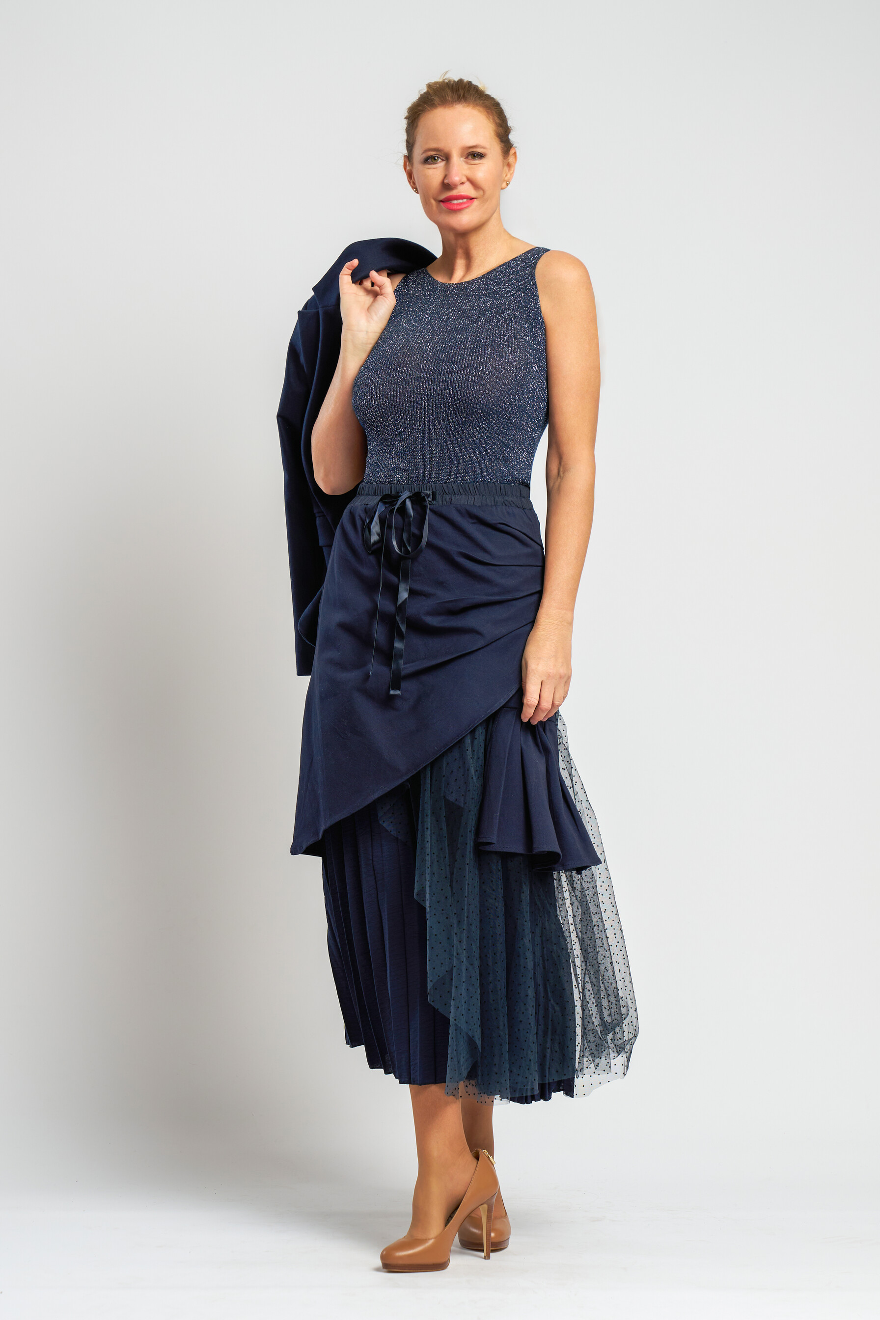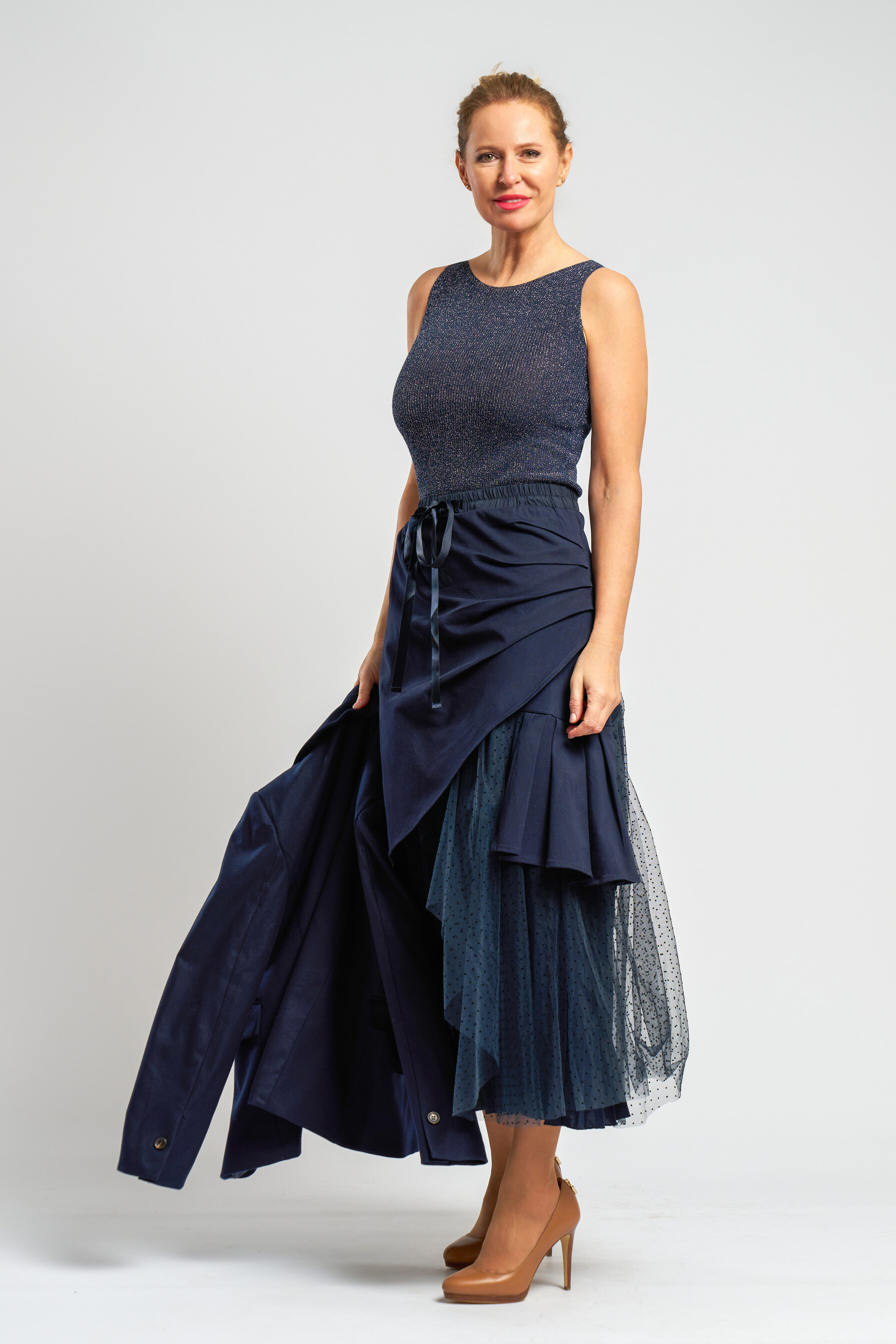 Modell magassága 173 cm, mellbősége 90 cm, derékbősége 74 cm